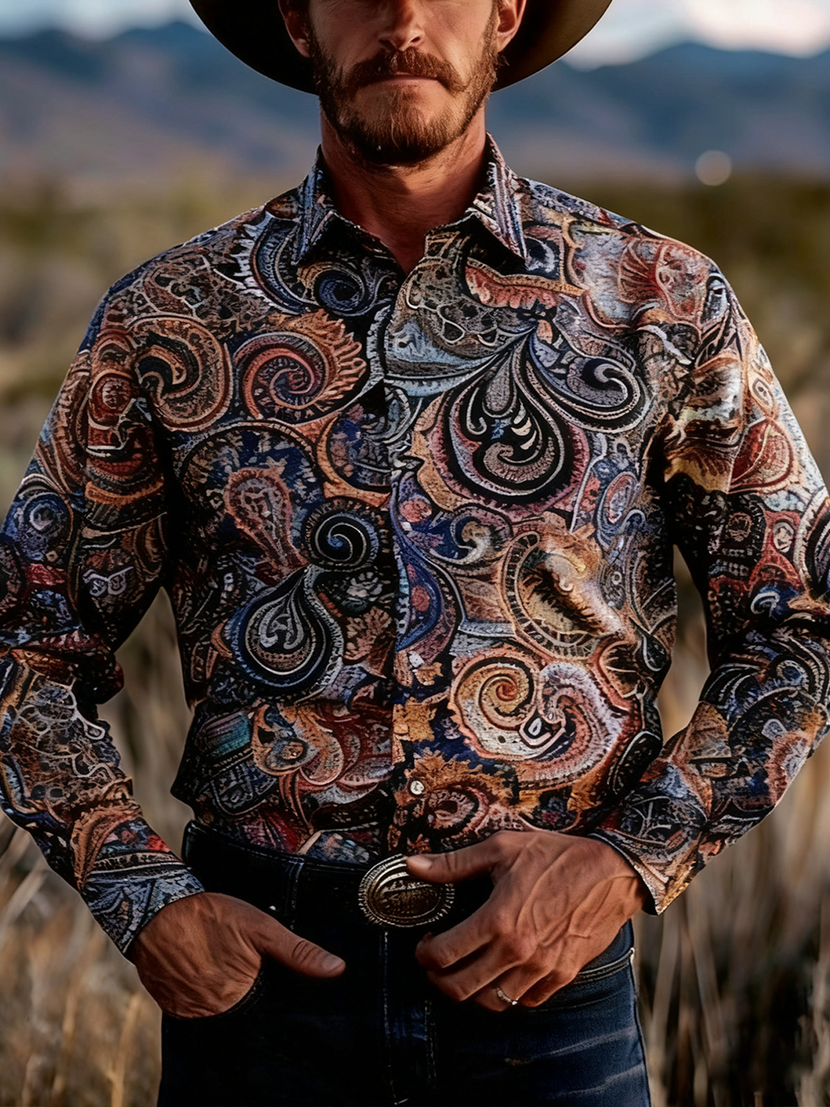 Men's Retro Vintage Pattern Long Sleeve Shirt