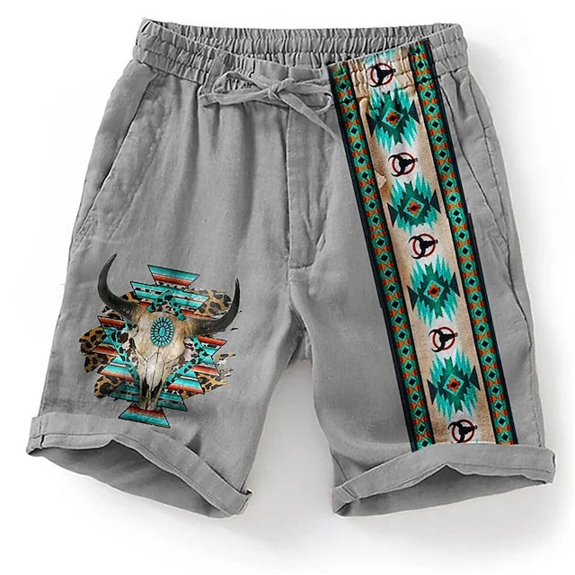 Men's Shorts Summer Shorts Beach Shorts Graphic Geometric Pattern Drawstring Elastic Waist 3D Print Short Breathable Soft Casual Daily Holiday Ethnic Style Retro Vintage Gray Micro-elastic